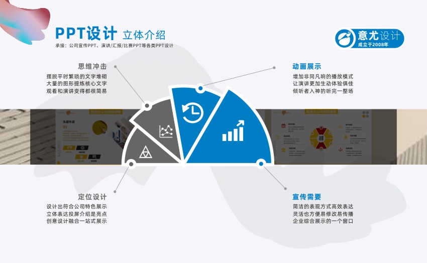 蘇州意尤文化傳播有限公司是一家有著多年廣告設(shè)計(jì)經(jīng)驗(yàn)的蘇州知名廣告企業(yè) 主要業(yè)務(wù)有蘇州PPT設(shè)計(jì)、蘇州產(chǎn)品PPT設(shè)計(jì)、蘇州企業(yè)PPT設(shè)計(jì)、蘇州會議PPT設(shè)計(jì)、蘇州項(xiàng)目PPT設(shè)計(jì)、企業(yè)VI設(shè)計(jì)、設(shè)計(jì)印刷宣傳冊/樣本/單頁/名片等 自2007年成立以來,蘇州意尤廣告公司與蘇州及蘇州各市的幾百家中外企業(yè)進(jìn)行了廣告設(shè)計(jì)合作,經(jīng)過多年發(fā)展公司已形成了以企業(yè)PPT設(shè)計(jì)、企業(yè)VI設(shè)計(jì),廣告設(shè)計(jì),廣告印刷,樣本設(shè)計(jì),宣傳冊設(shè)計(jì),名片印刷,菜譜制作,單頁,宣傳單等一批特長業(yè)務(wù),相信在各位新老客戶的關(guān)心下,本公司會得到更大的發(fā)展,同時(shí)為客戶的發(fā)展宣傳保駕護(hù)航。